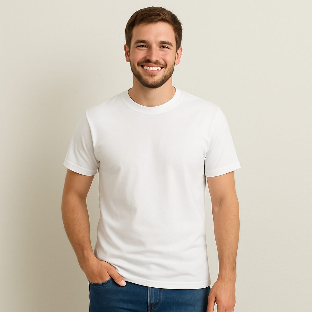 Classic Men’s White Crew Neck T-Shirt – Premium Cotton Fit