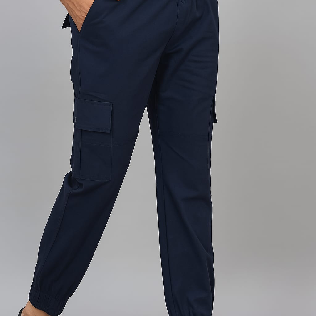 Men’s Navy Blue Cargo Jogger Pants with Elastic Waist and Side Pockets